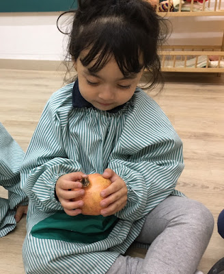 A P3 ens encanta la plàstica i experimentar amb materials i textures diferents, avui ha tocat el plàstic amb bombolles. Mireu quina magrana més original!!